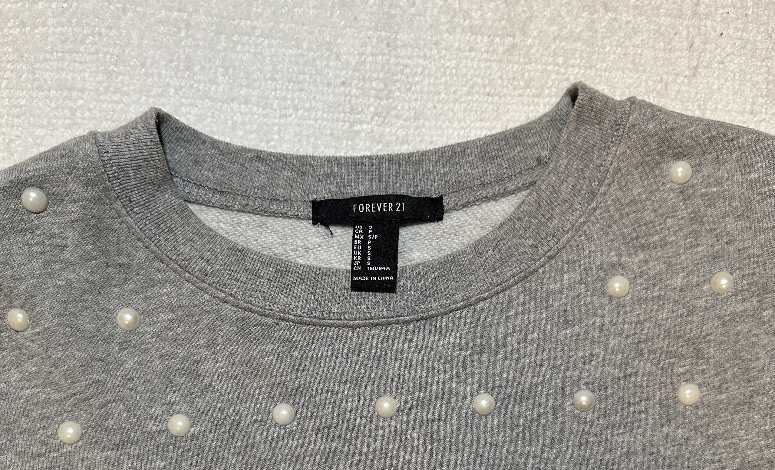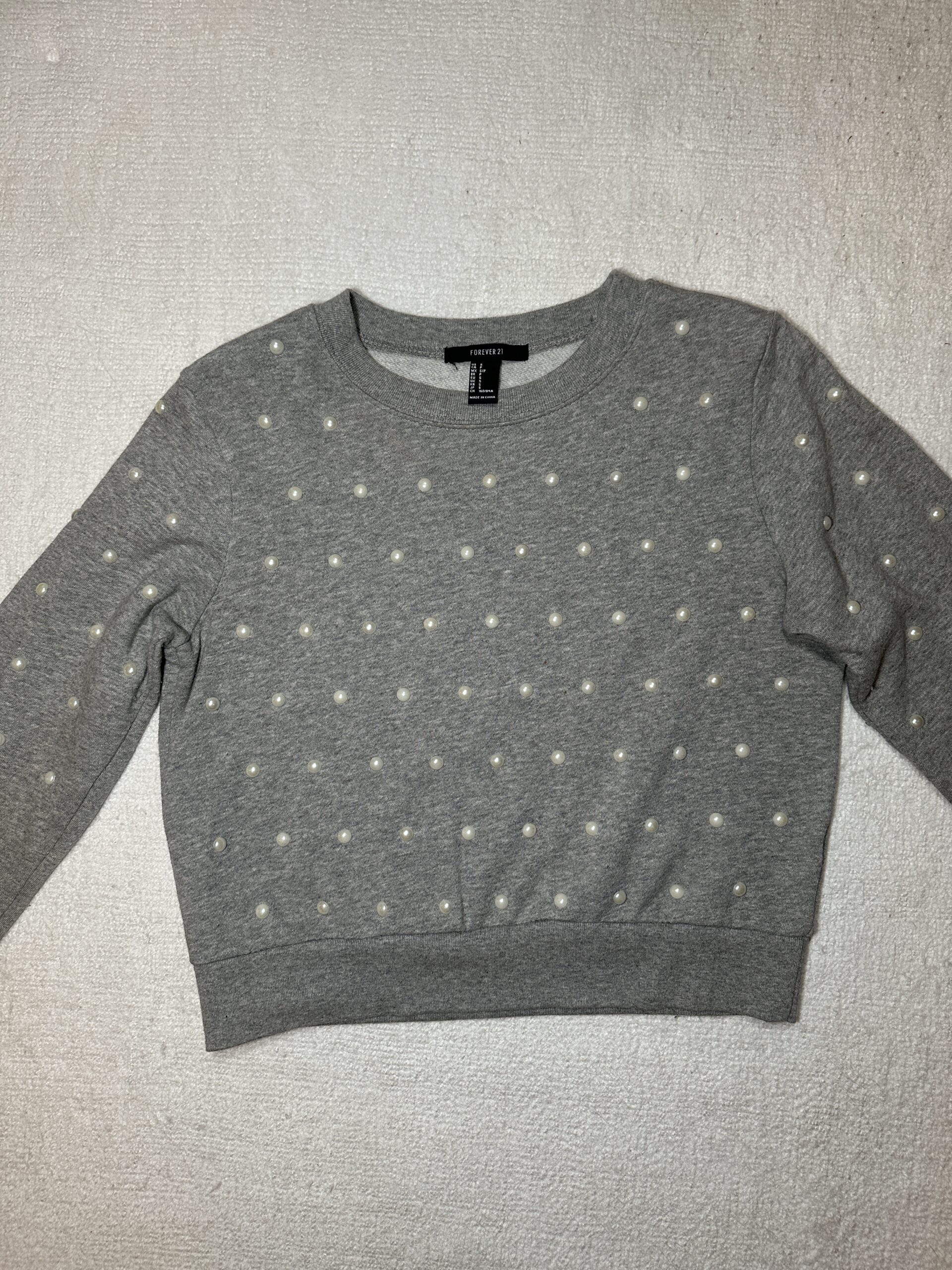 Forever21 Gray Polka-dot Pearl Sweater, Size S
